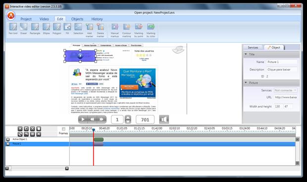 Com isso, você pode ligar websites à páginas de emissoras de televisão, marcas de produtos ou celebridades que aparecem na projeção, por exemplo. O primeiro passo é importar um ou mais vídeos para o editor. Para isso, vá para a aba “Video” e clique em “Open”. Com ele já no sistema, você pode começar a edição. Através do player do aplicativo, vá para o tempo desejado e pause a exibição.